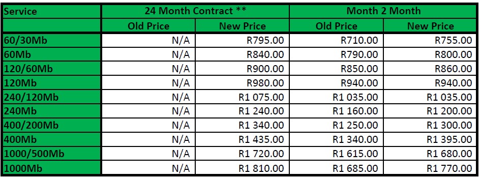 - Frogfoot’s price increase is due mainly to increased operational costs including interconnect fees charged to Internet service providers and current market conditions