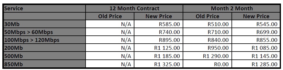 • Downgrades are charged @ R999.00 Incl VAT.